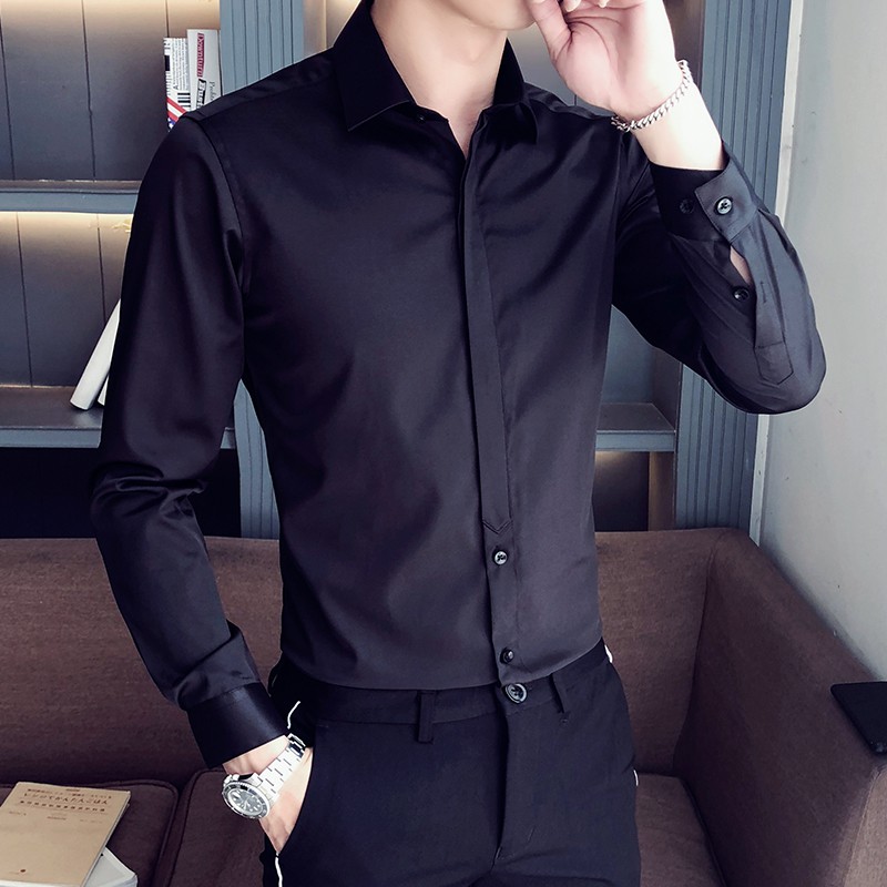 Man Spring White Top Shirts Men Smart Casual Long Sleeve Shirt