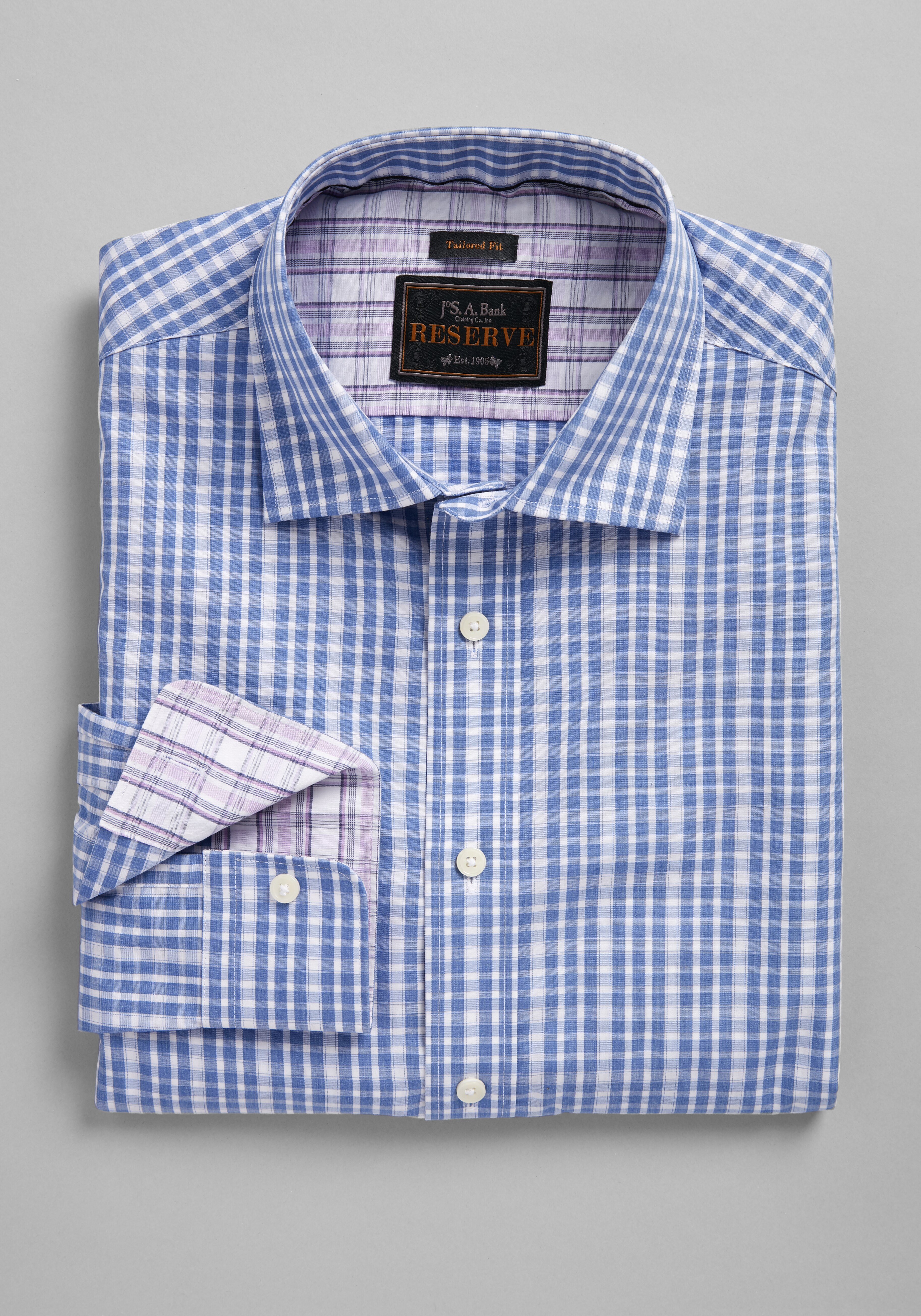 Purple Poplin Tattersall Check Sport Shirt Casual Dress Shirts