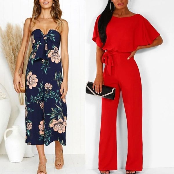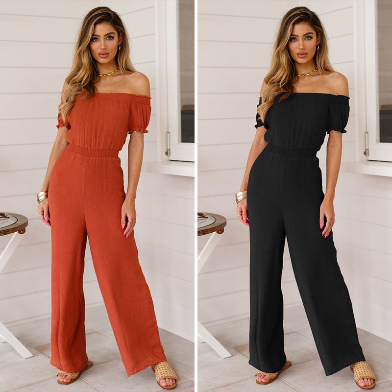 Wide Leg Jumpsuit Women Strapless Peplum Solid Color Casual
