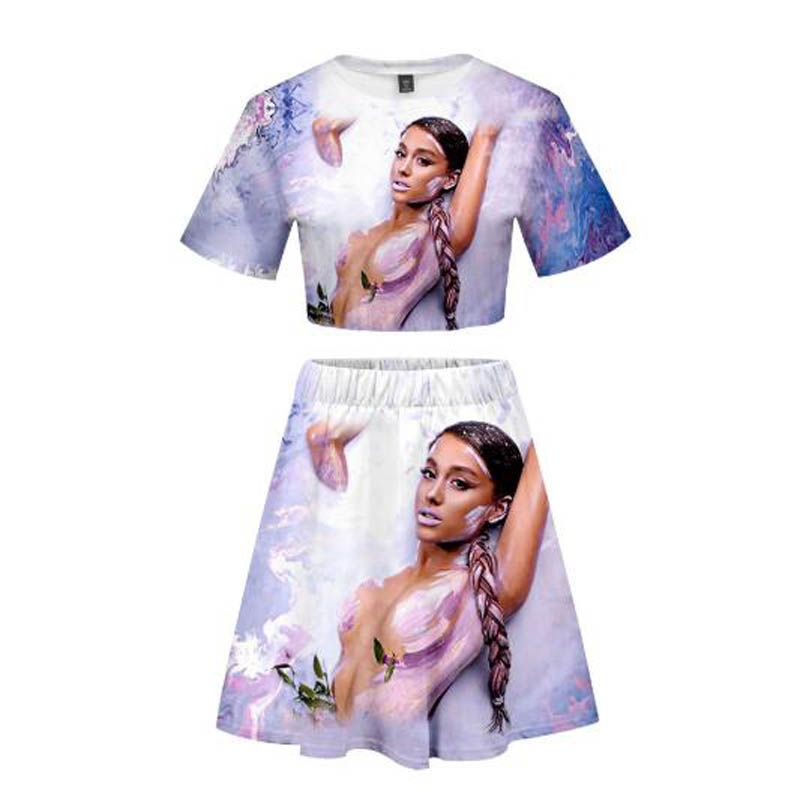 Ariana Grande Summer Clothes Two Piece Set Girl Crop Top And