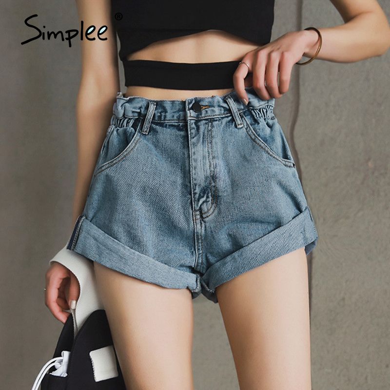 2020 Simplee Summer Casual Blue Denim Shorts Women Button Pocket