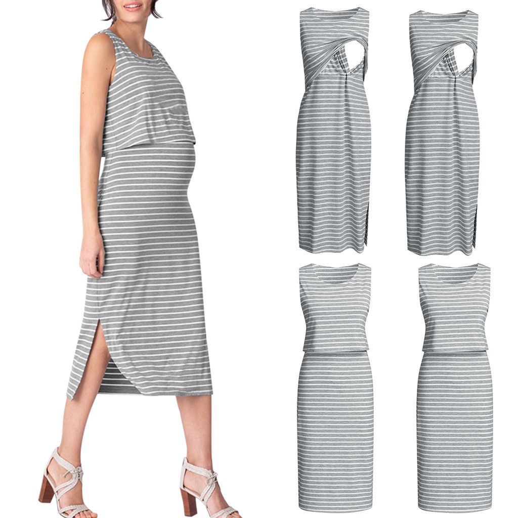 2020 Maternity Dresses Women Pregnant Nursing Sleeveless Stripe
