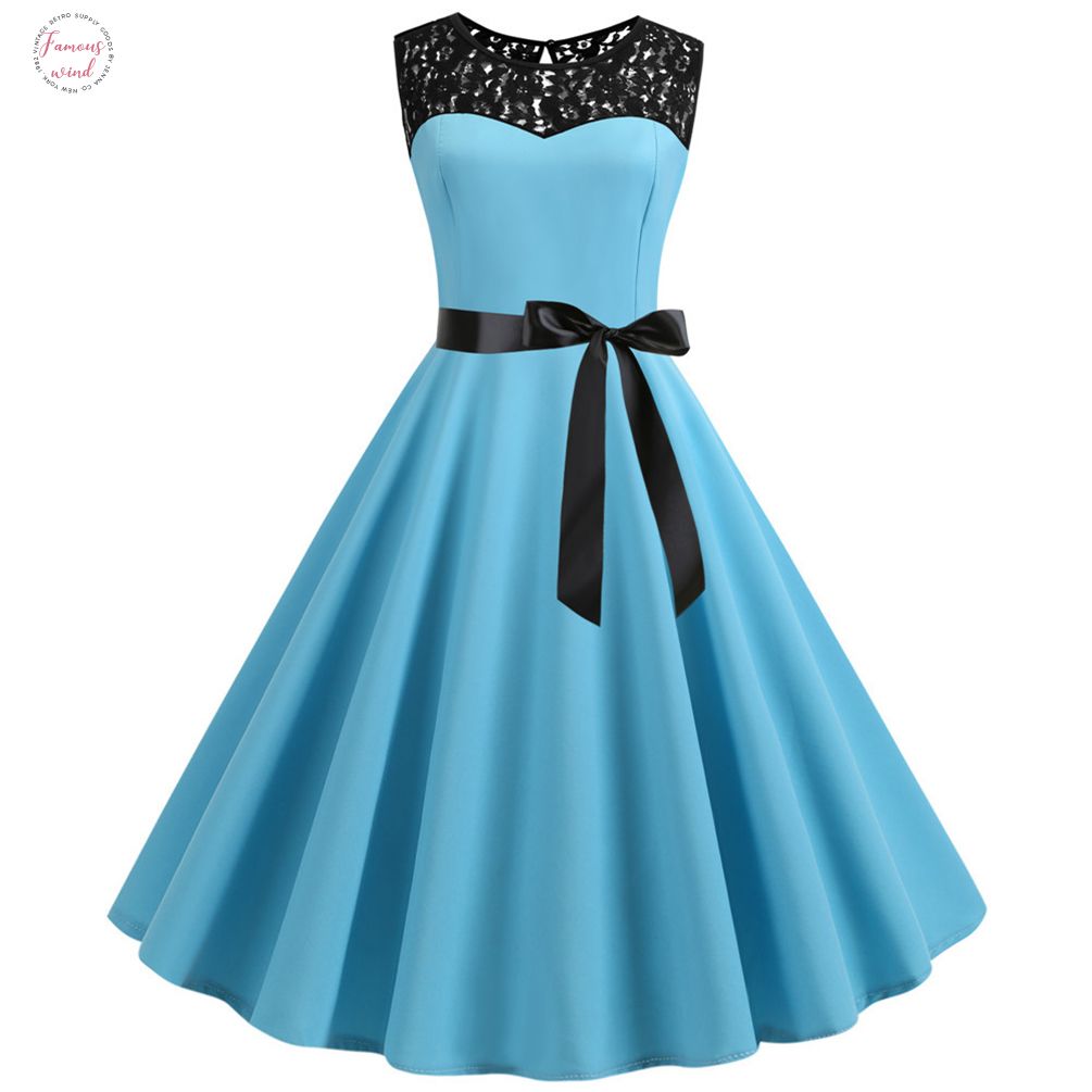 Light Blue Casual Dresses Lace Patchwork Summer Dress Women 2020