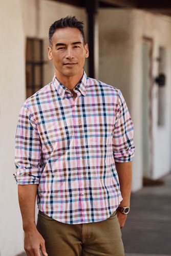 Men S Plaid Casual Fit Long Sleeve Detachable Hood Button Down