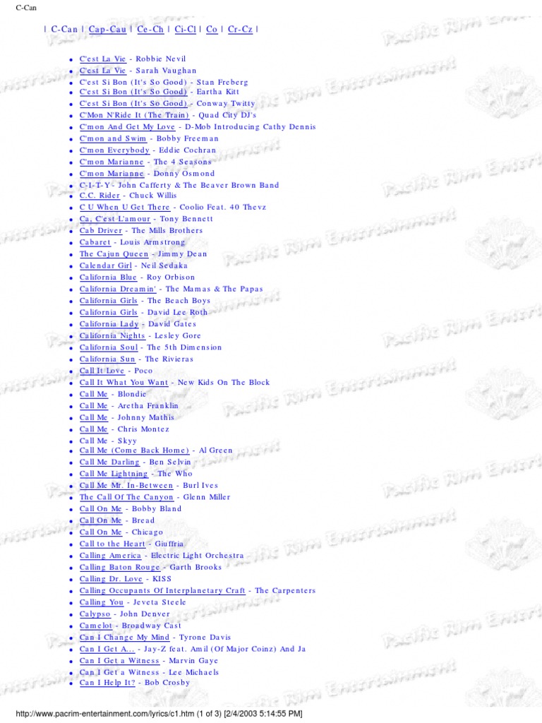 Lyrics C American Musicians Entertainers
