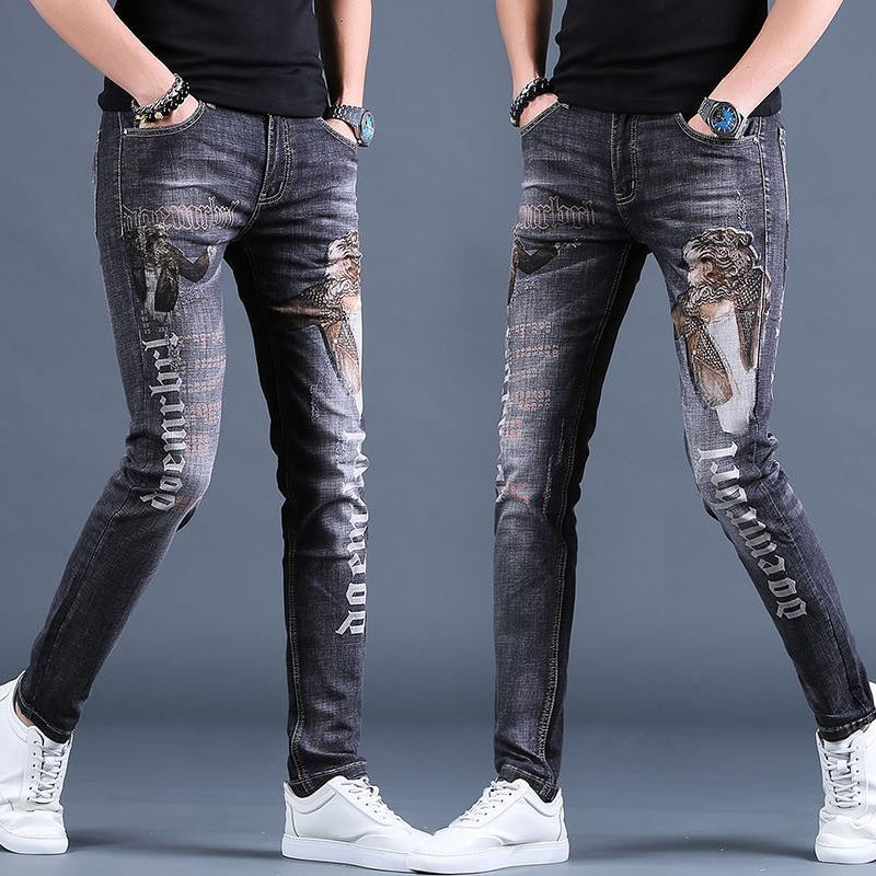 Men S Spring Fashion Black T Shirt Ripped Jeans White Sneaker