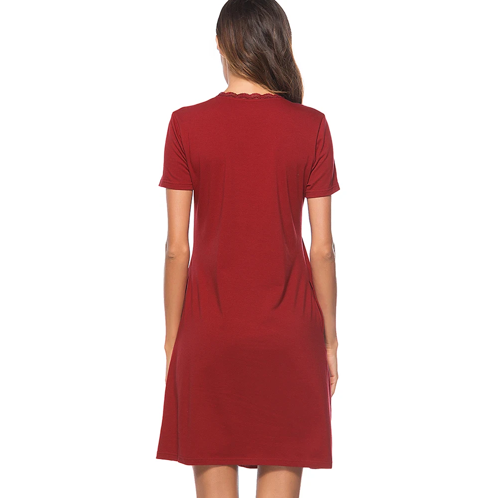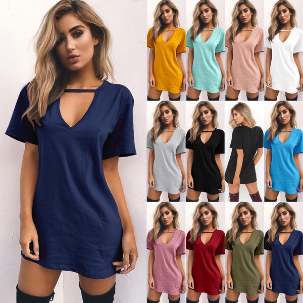 Moolili Fashion Women Summer Short Sleeve V Neck Solid Shift
