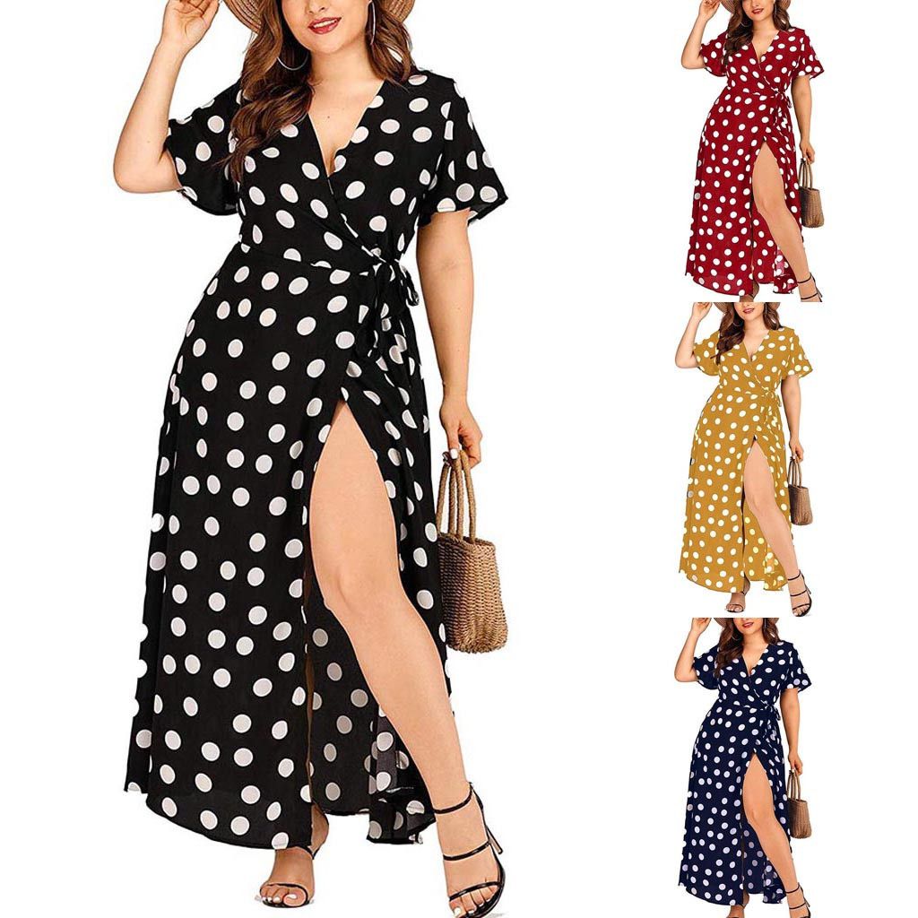 Vintage Rust Polka Dot Print Belted Shirt Button Dress Women 2019