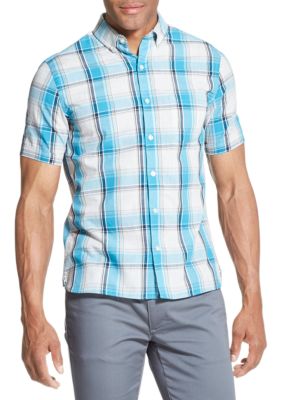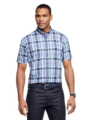 Van Heusen Men S Wrinkle Free Regular Fit Blue White Check Royal