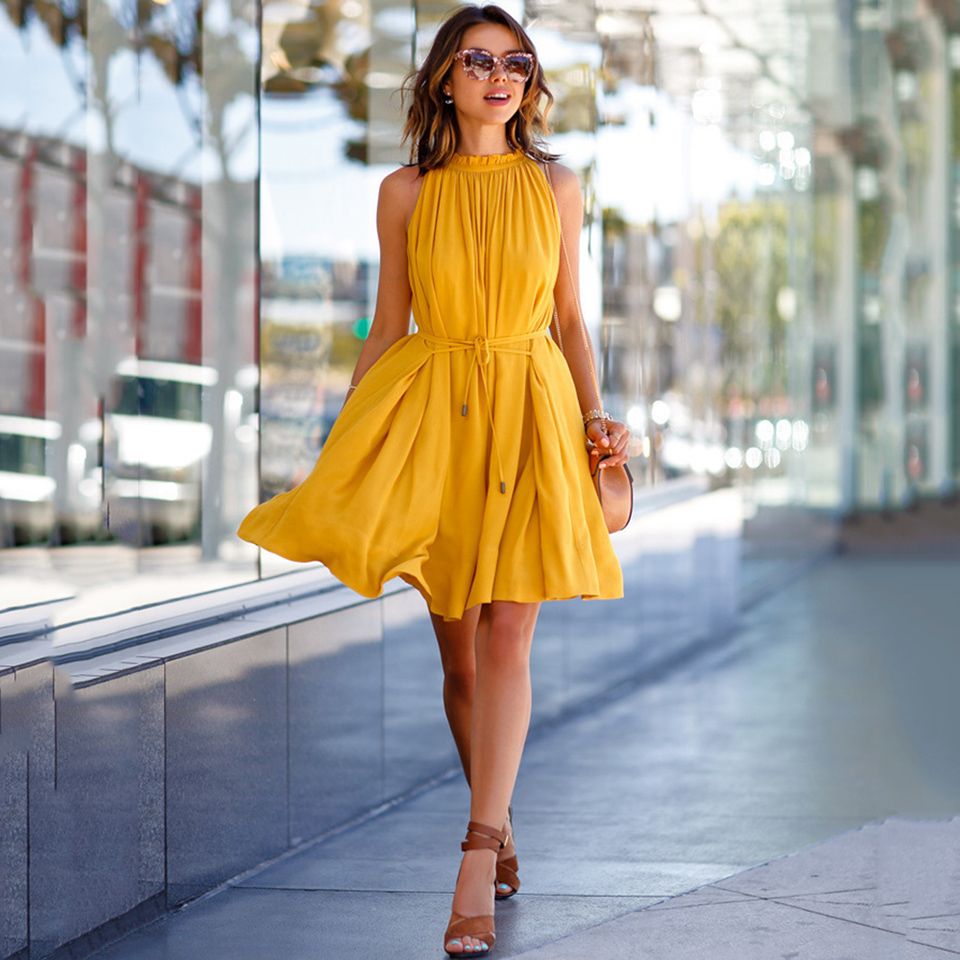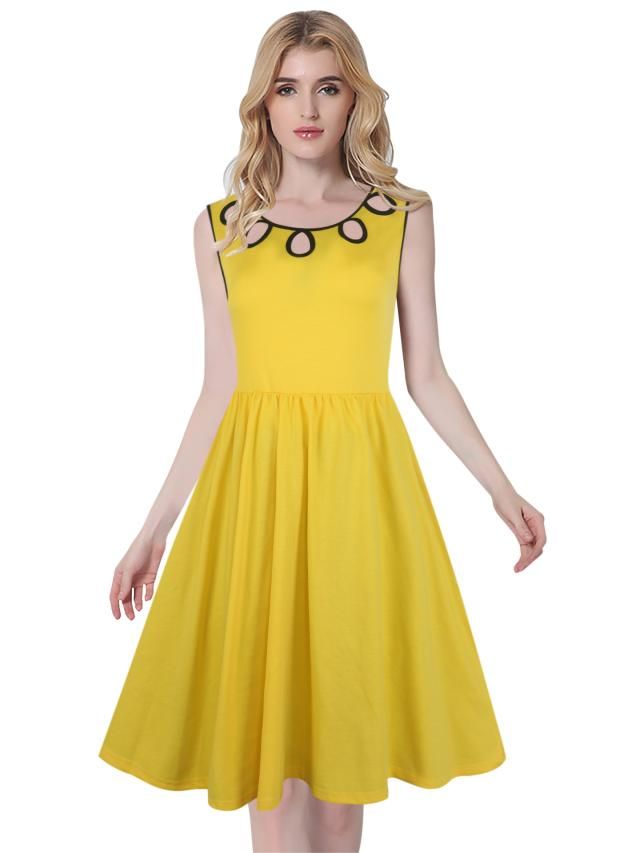 Vestido Amarillo Casual Con Falda De Vuelo