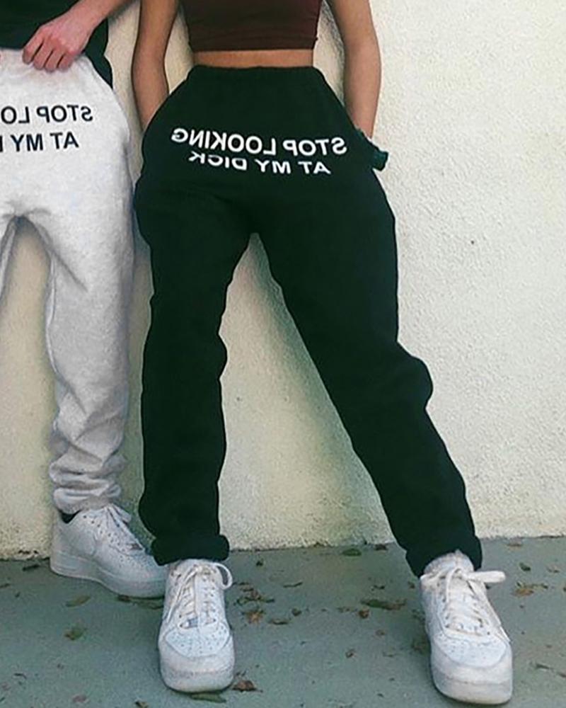 Simenual Letter Print Casual Workout Two Piece Set Women Fashion