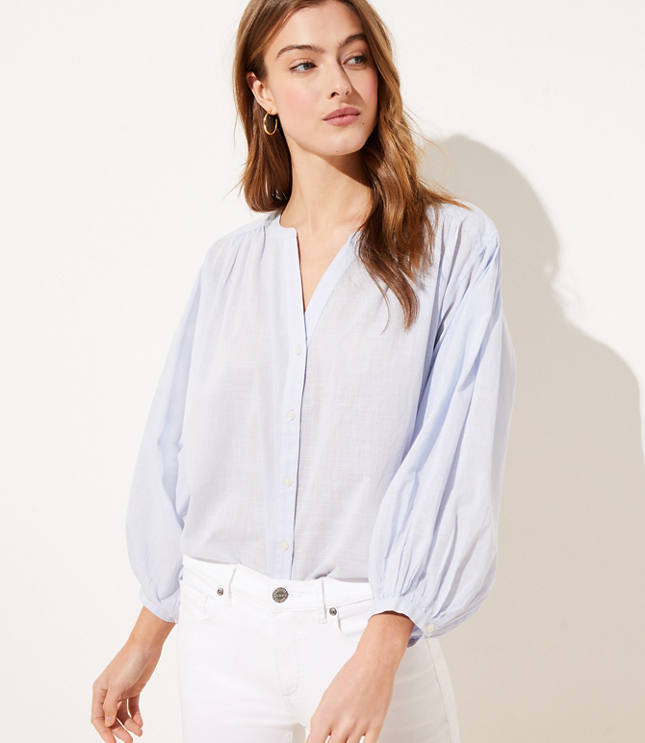 White Pinstripe Round Neck Long Sleeve Frill Hem Blouse Blouse