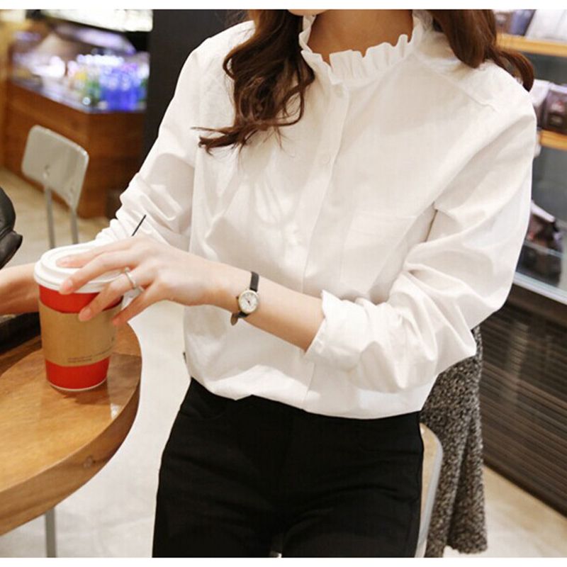 2020 100 Cotton Women White Shirt Ruffled Collar Plus Size Women
