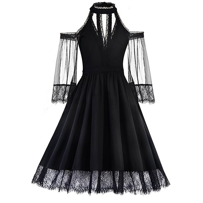 Gothic Women Lace Victorian Blouse Flare Sleeve Steampunk Slim