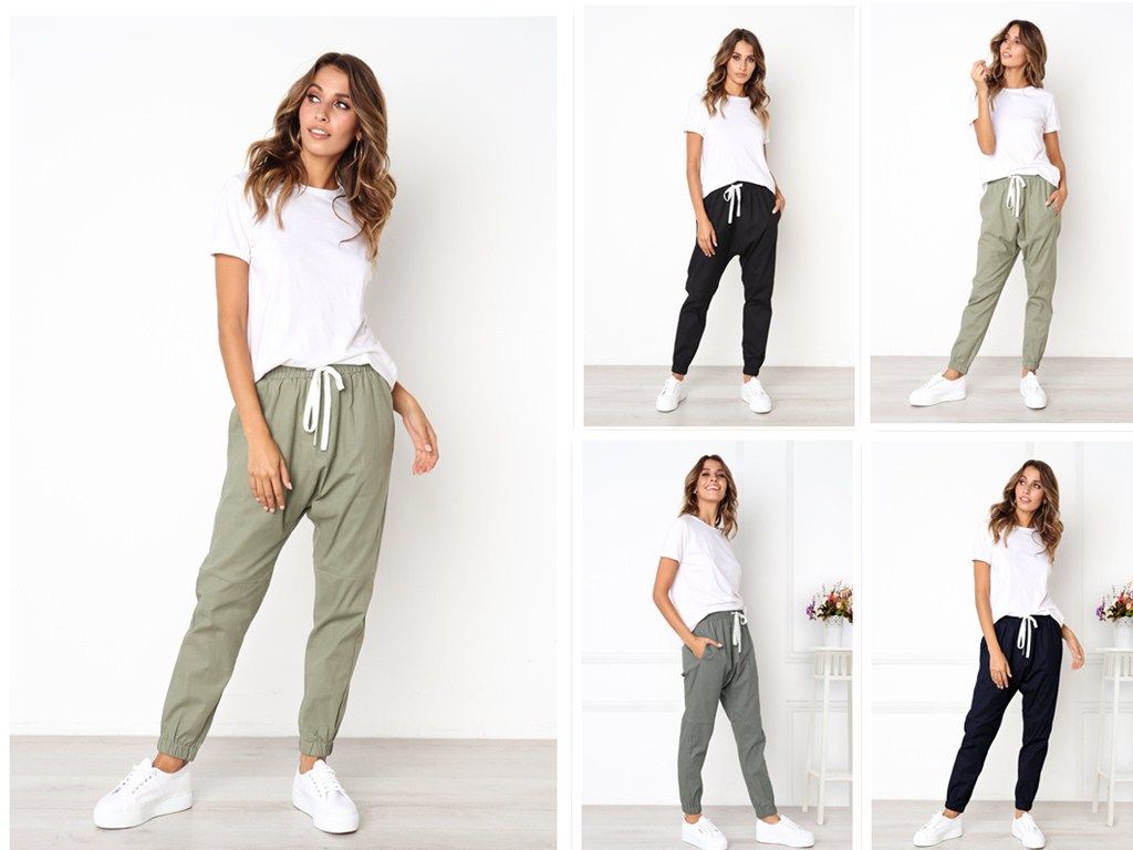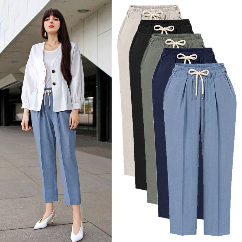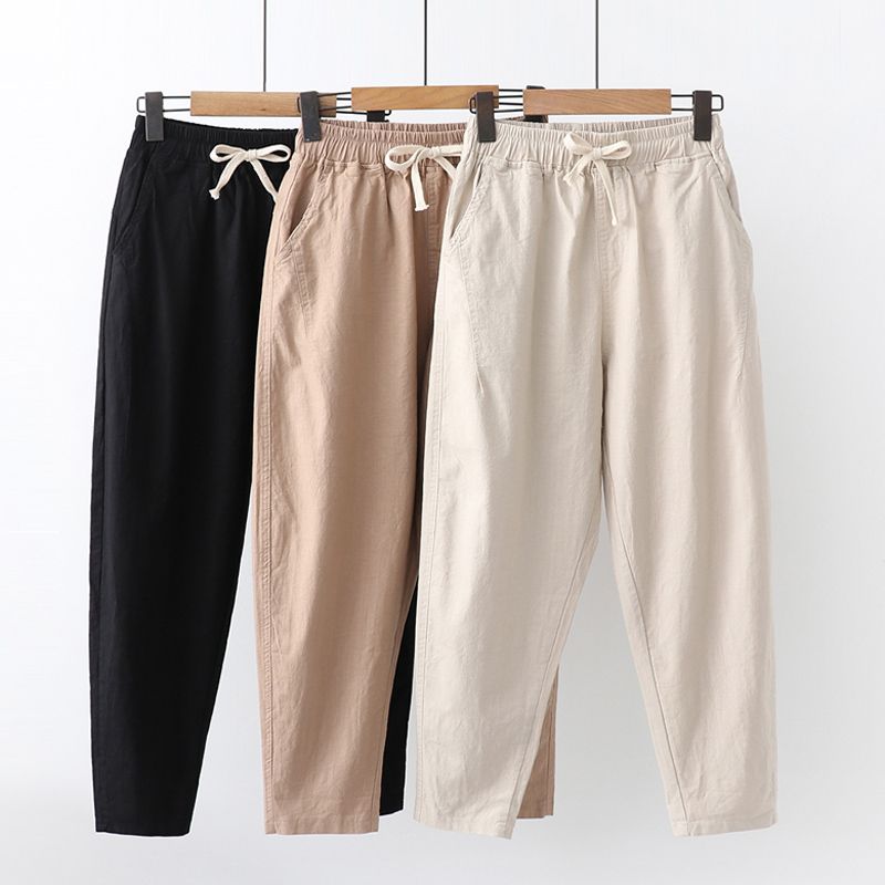Minge Women S Casual Trousers Solid Color Elastic Waist Cropped