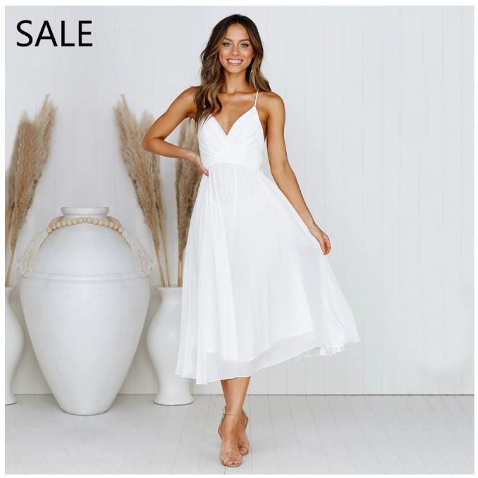 Girls White Summer Dress Spaghetti Strap Bow Dresses Sexy Women V
