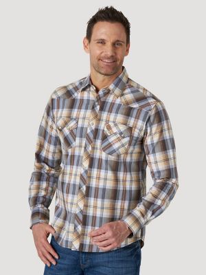 Wrangler Mens Western Flannel Shirt Heavyweight Pearl Snap Buttons