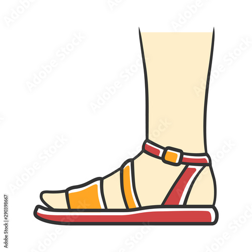Sandals Yellow Flat Color Icon Woman Stylish Footwear Design