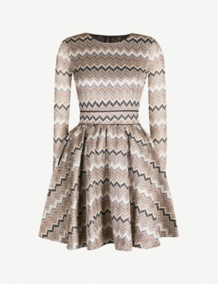 Long Sleeve Pleated Floral Printed Dress Zigzag